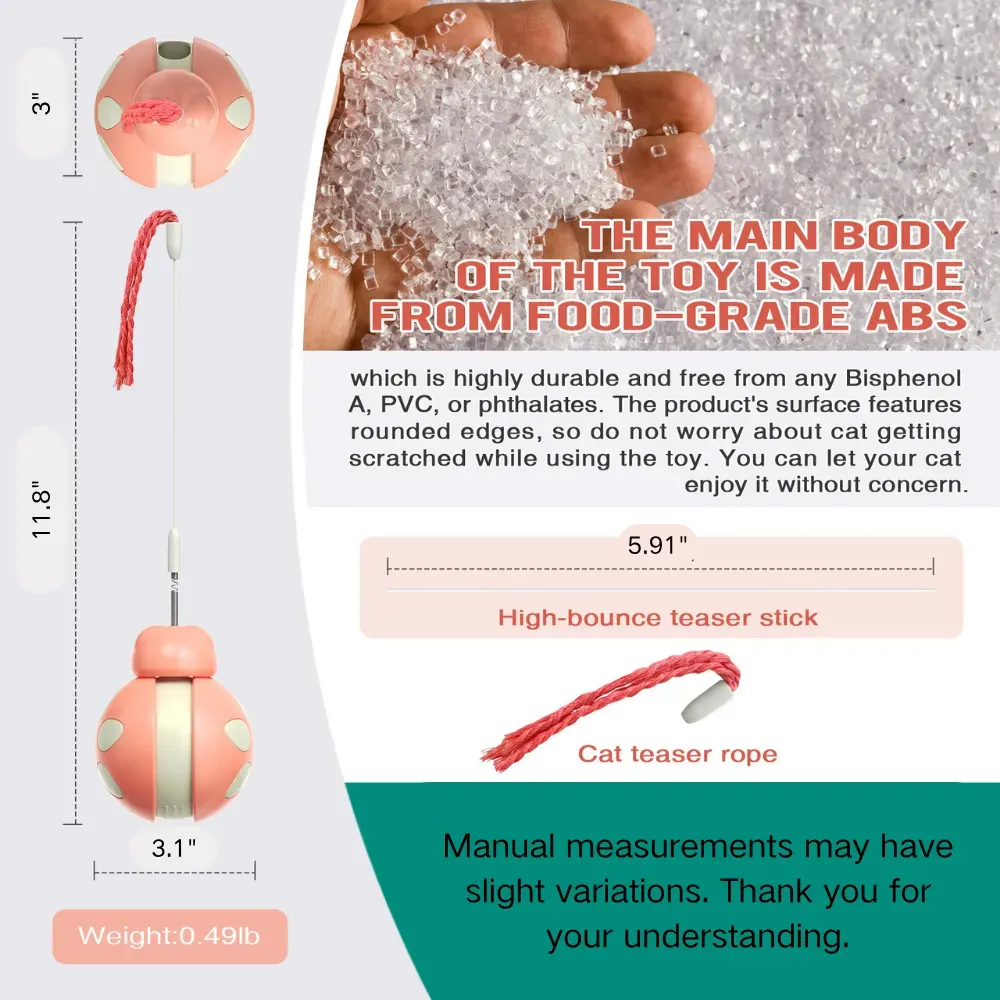 Interactive Tumbler Base – Unpredictable wobble design encourages pouncing, batting, and chasing, promoting exercise and reducing boredom.